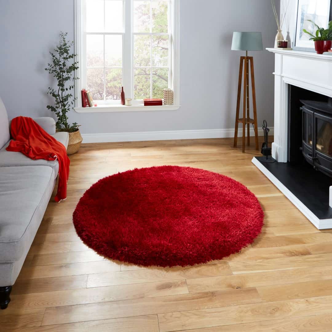 The Montana Red Circle is a luxurious and high-quality addition to any living space. This range is defined by its incredibly heavy weight and dense hand tufting, making it one of the most sumptuous and luxurious shaggy rugs available. With its 8cm pile height and dense tufting, the Montana range creates a soft and thick texture that feels incredibly indulgent underfoot.
